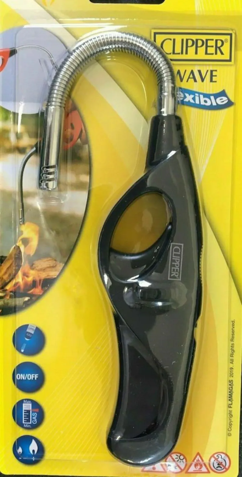 Experience the perfect flame with the Clipper Flexible Wave lighter, crafted for modern kitchens and home grills. Its flexible metal neck reaches tight spots effortlessly, while the ergonomic grip and clear ON/OFF switch ensure ease of use.
