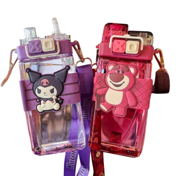زجاجة مياه مزدوجة الشفاط بطبعة كرتونية، سعة ٥٨٠ مل
