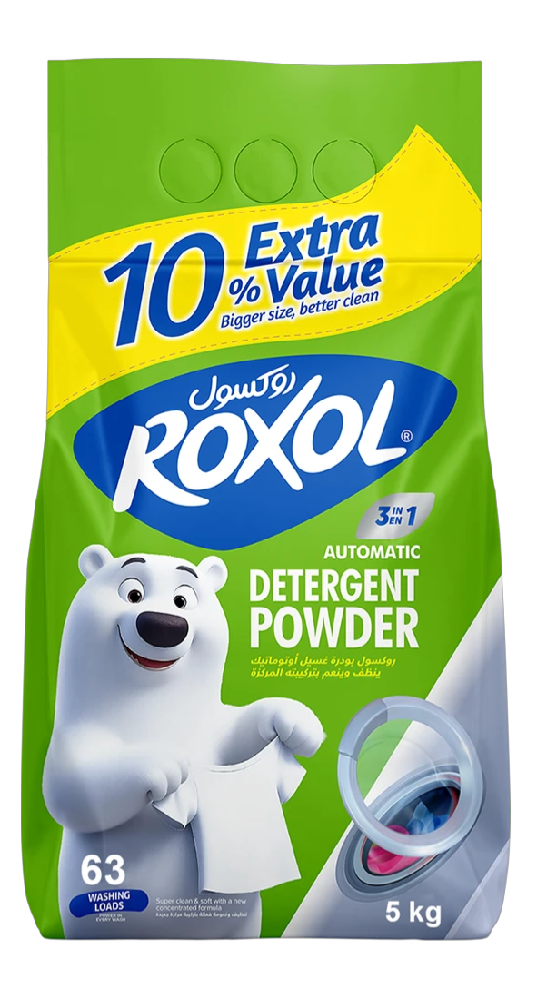✨ مع عبوة روكسول 3 في 1 – 5 كجم، تحصل على أداء احترافي في كل غسلة، بتركيبة متطورة تناسب احتياجاتك اليومية وتمنحك نتائج مذهلة.